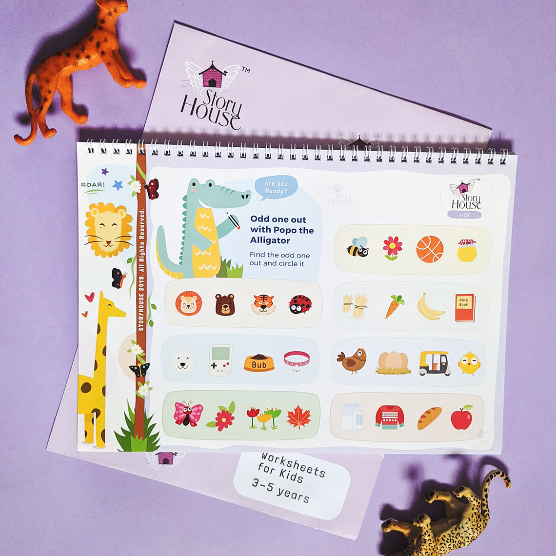 This book is illustrated and designed with all animals in it. Each worksheet has dialogues which weaves into short stories for every page. The caterpillar says, “Lets go into the maze.” The Monkey says, “lets solve!”