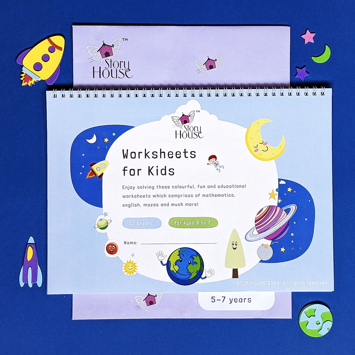 This book is illustrated and designed with various elements of planets in it. Each worksheet has dialogues which weaves into short stories for every page
